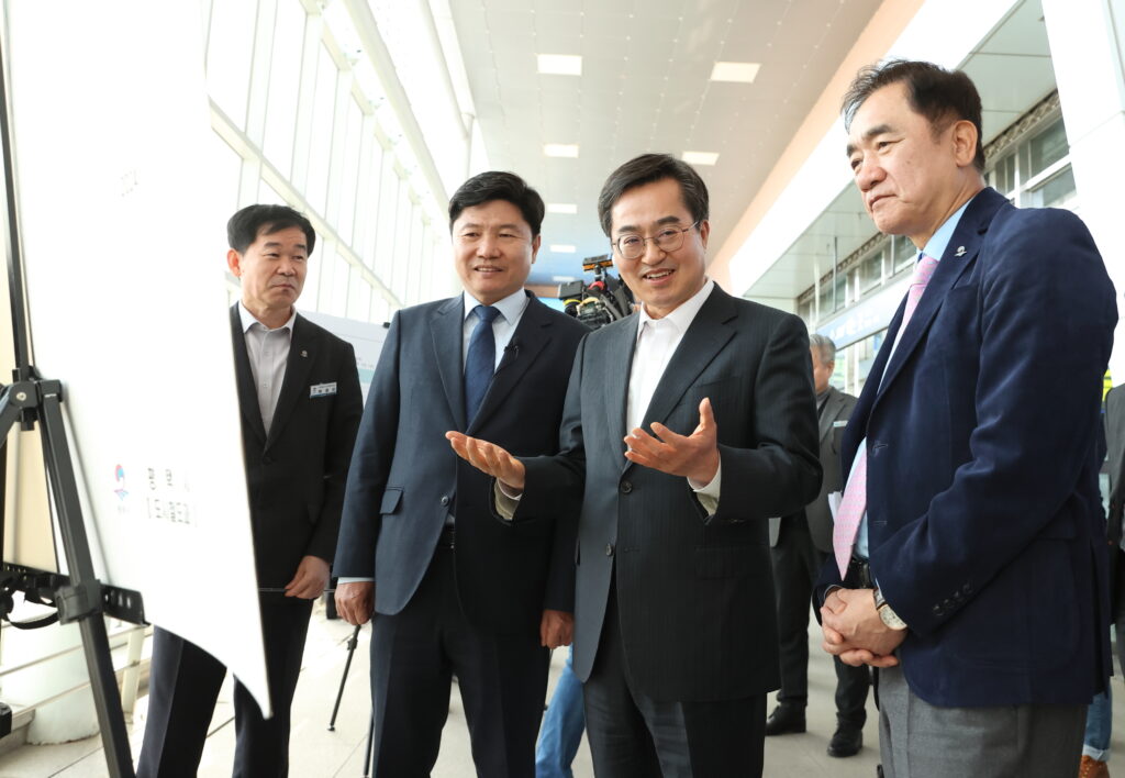 <사진설명> 김동연 경기도지사는 1일 오후 GTX A·C노선 연장과 관련해 평택지제역을 정장선 평택시장 등 관계자와 함께 방문해 주요시설을 확인했다.
