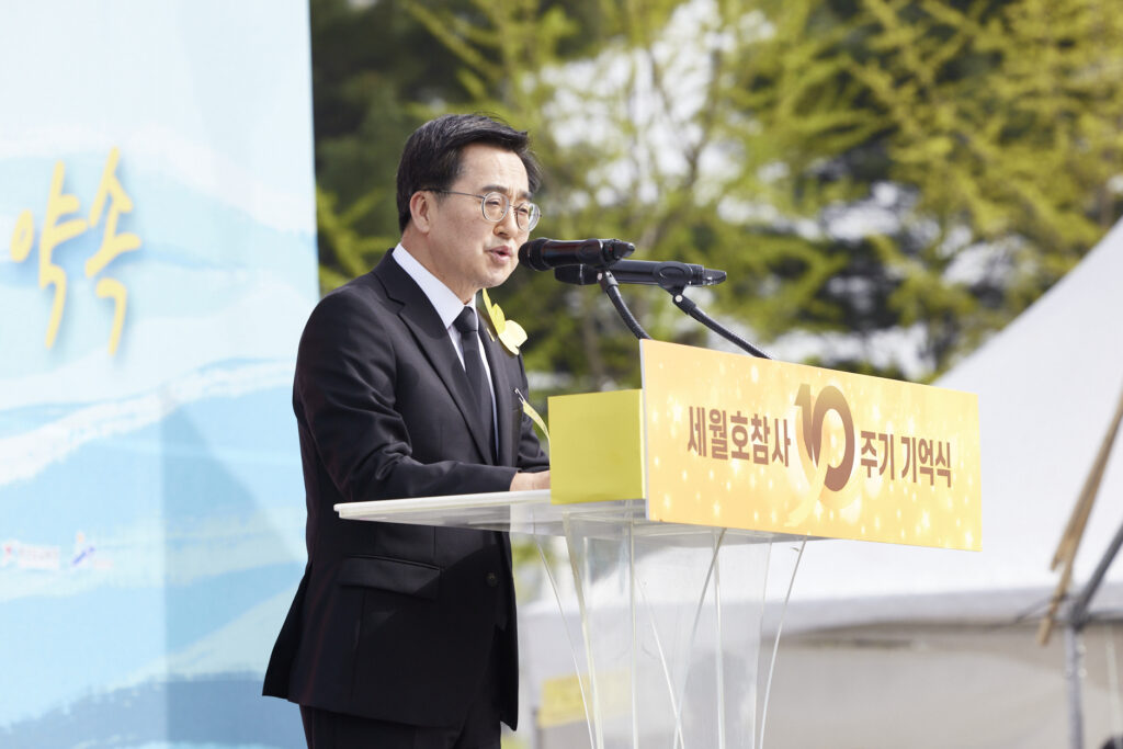 김동연 경기도지사가 16일 세월호 참사 10주기 기억식에 참석해 대한민국의 현실은 세월호 참사가 있었던 10년 전에서 한 발짝도 나아가지 못했다며 세월호의 교훈이 우리 사회에 온전히 뿌리내리도록 끝까지 기억하겠다고 밝혔다.