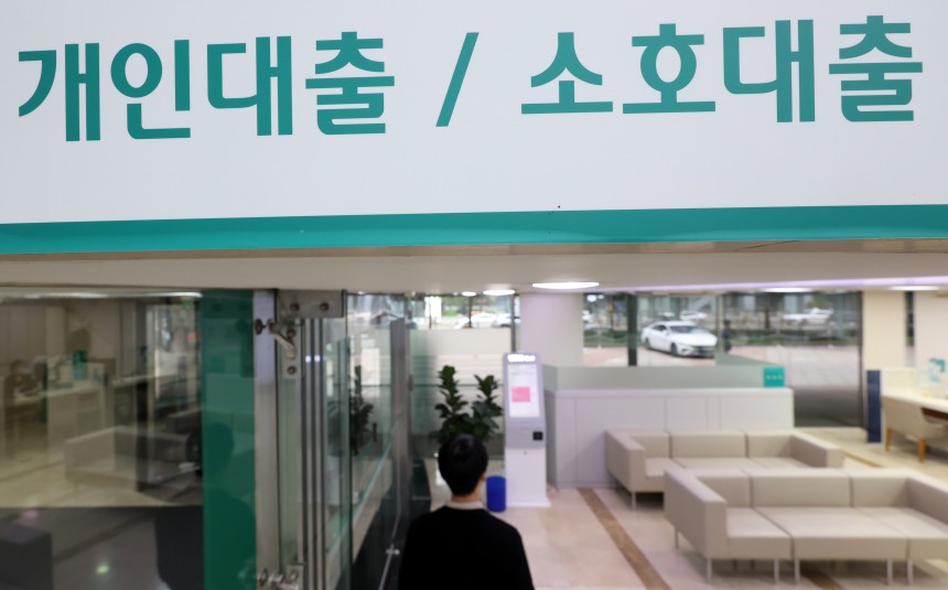 서울시내 은행 대출창구 앞을 시민이 지나가고 있다. /뉴스1