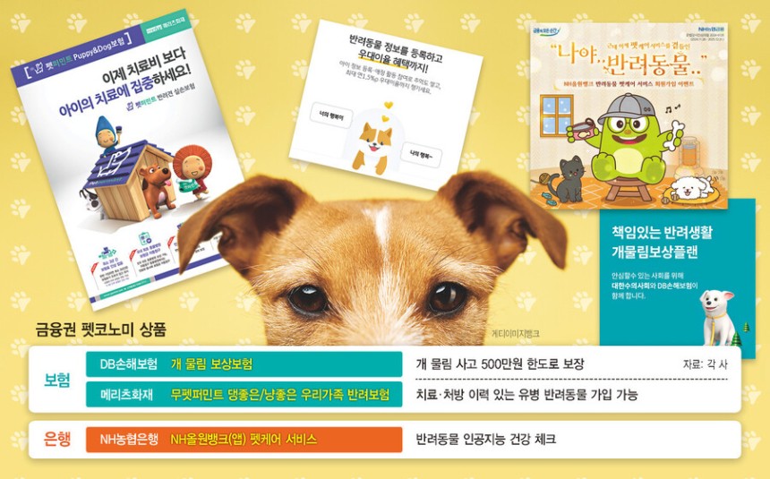 3년 내 반려동물 국내시장 규모가 15조원까지 커질 것으로 예상되면서, 금융권이 반려가구를 위한 ‘펫코노미’(펫+경제) 상품 개발을 확대하고 있다. ‘개 물림’ 사고를 보장하는 보험 특약 상품을 이용할 수 있는 것은 물론, 은행 앱을 통해 반려동물의 간단한 건강상태 확인도 할 수 있다.