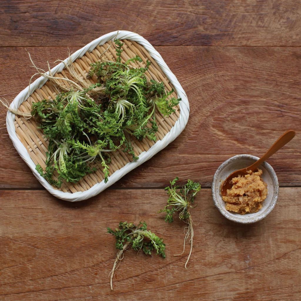 보글보글 된장을 풀은 스프에 깨긋히 씻은 냉이를 넣고 끓이면 냉이 된장국.